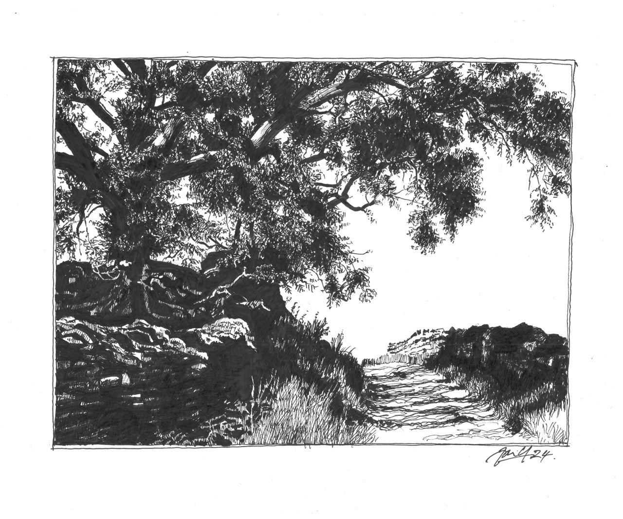 A4 print from original pen & ink drawing by Jon Young, printed on 250g recycled Fabriano paper. Mounted with off white to A3 to celebrate the beauty of The Lake District.